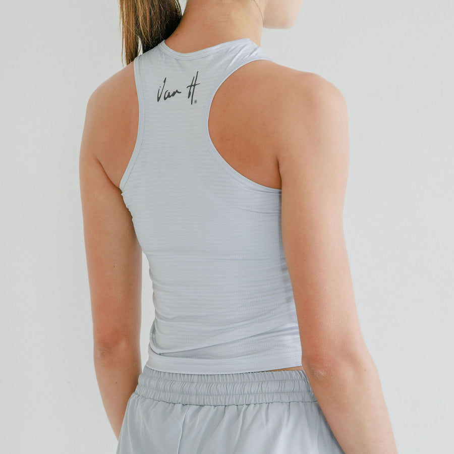 Racerback Design: Features a deep-cut racerback for maximum shoulder mobility and enhanced ventilation during peak performance.